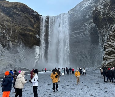 Visit to the Seljalandsfoss waterfall, famous for allowing visitors to walk behind its curtain of water, offering a unique perspective and spectacular views.