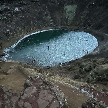 Before finishing, visit the frozen crater Kerið.