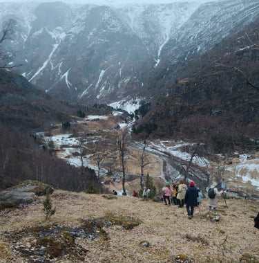 Faremos um passeio a pé pelos arredores de Skjolden, explorando a sua beleza natural e absorvendo a tranquilidade do local. Este passeio será uma excelente oportunidade para apreciar o fiorde e as montanhas que definem esta região magnífica.
