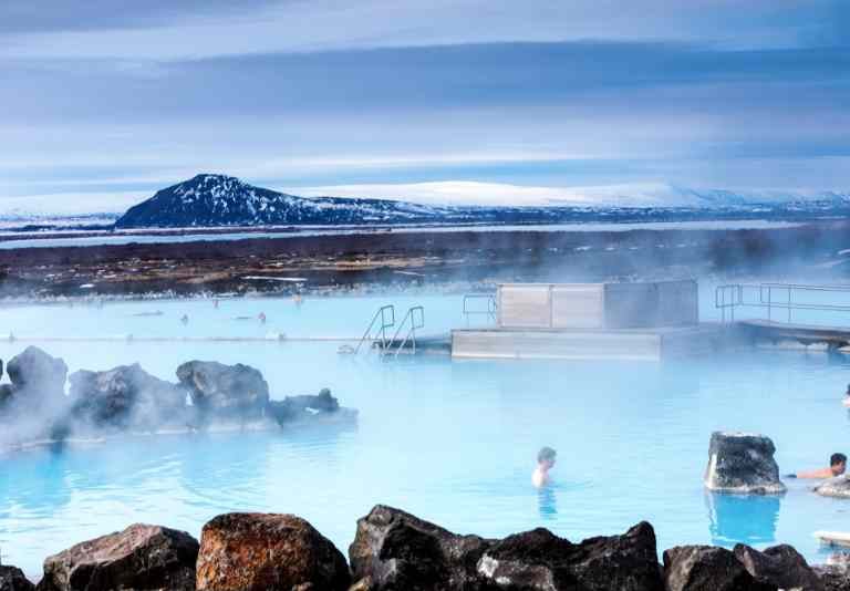 Relaxar nas Mývatn Nature Baths ao final do dia